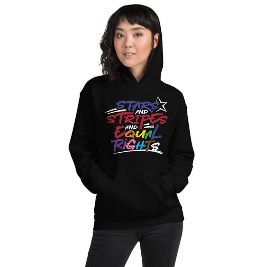 Stars and Stripes and Equal Rights (Rainbow Letters) - Unisex Hoodie in Dark Colors - Supporting Equal Rights for All Americans